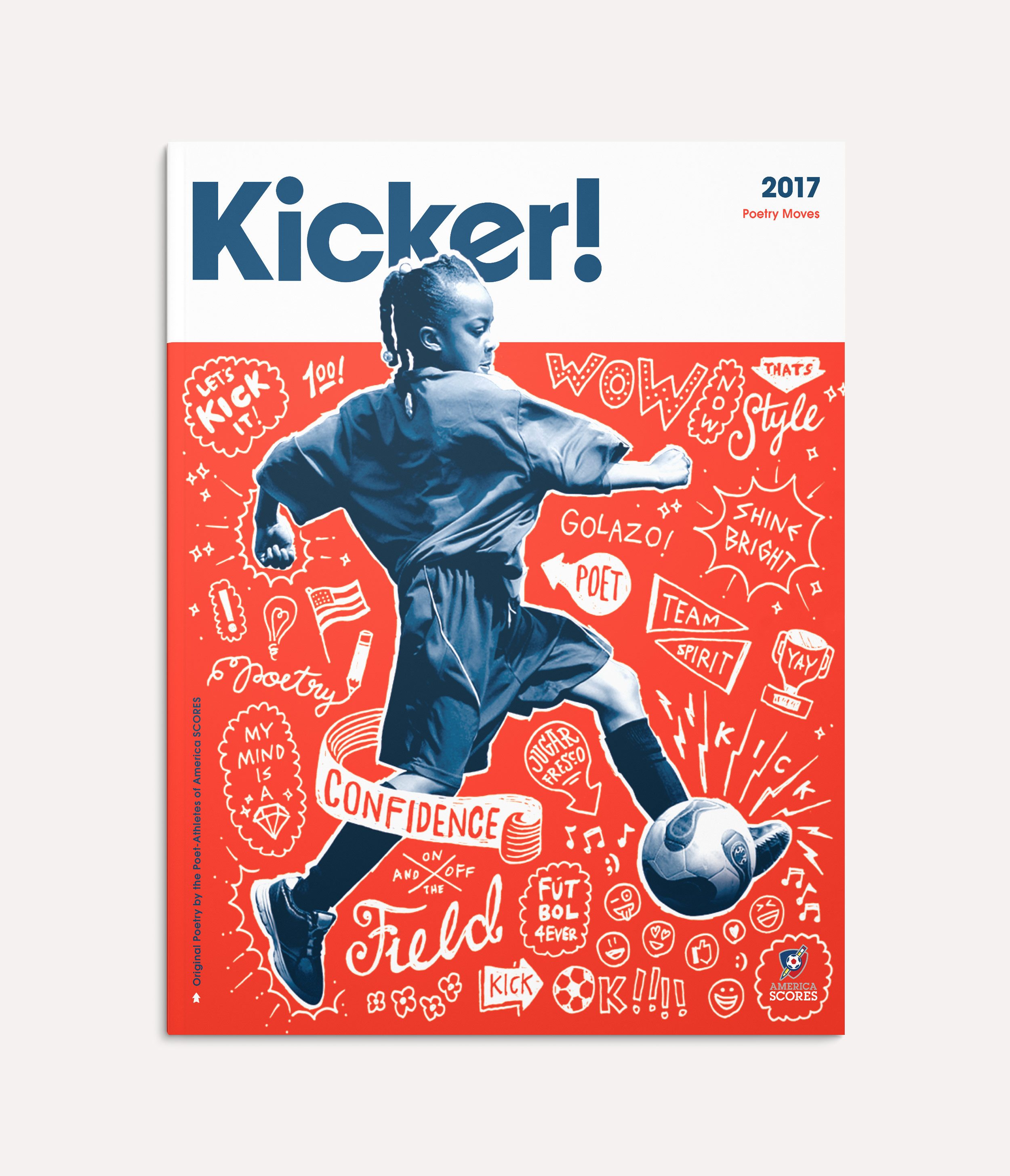 Kicker! is the official ‘by-kids, for-kids’ magazine of America SCORES. Part annual report, part fun’n’games, Kicker! celebrates the original poetry of SCORES poet-athletes from 14 program sites in the U.S. and Canada.